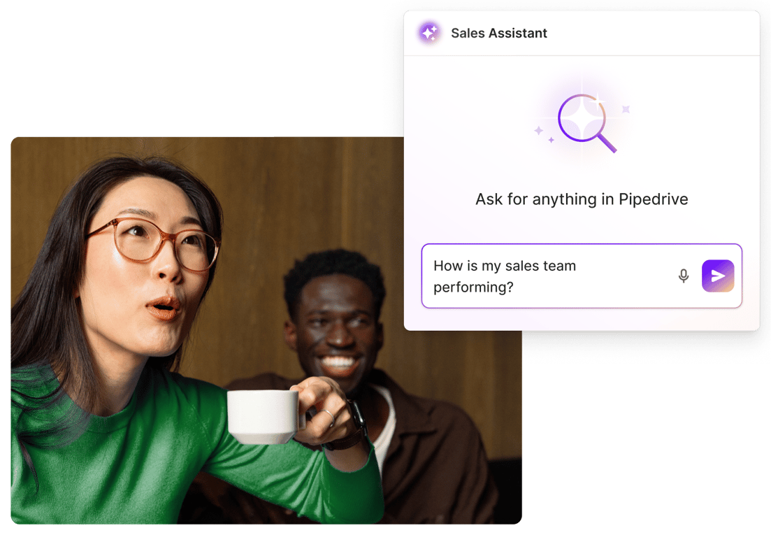 Pipedrive’s Sales Assistant uses AI to surface insights from your data, identify patterns and strategies, and answer your questions.
