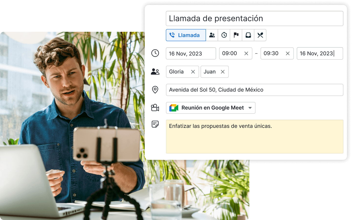 Rastrea fácilmente las conversaciones y tareas de ventas en una sola herramienta y brinda a tus vendedores el contexto que necesitan para dar seguimiento más rápido.