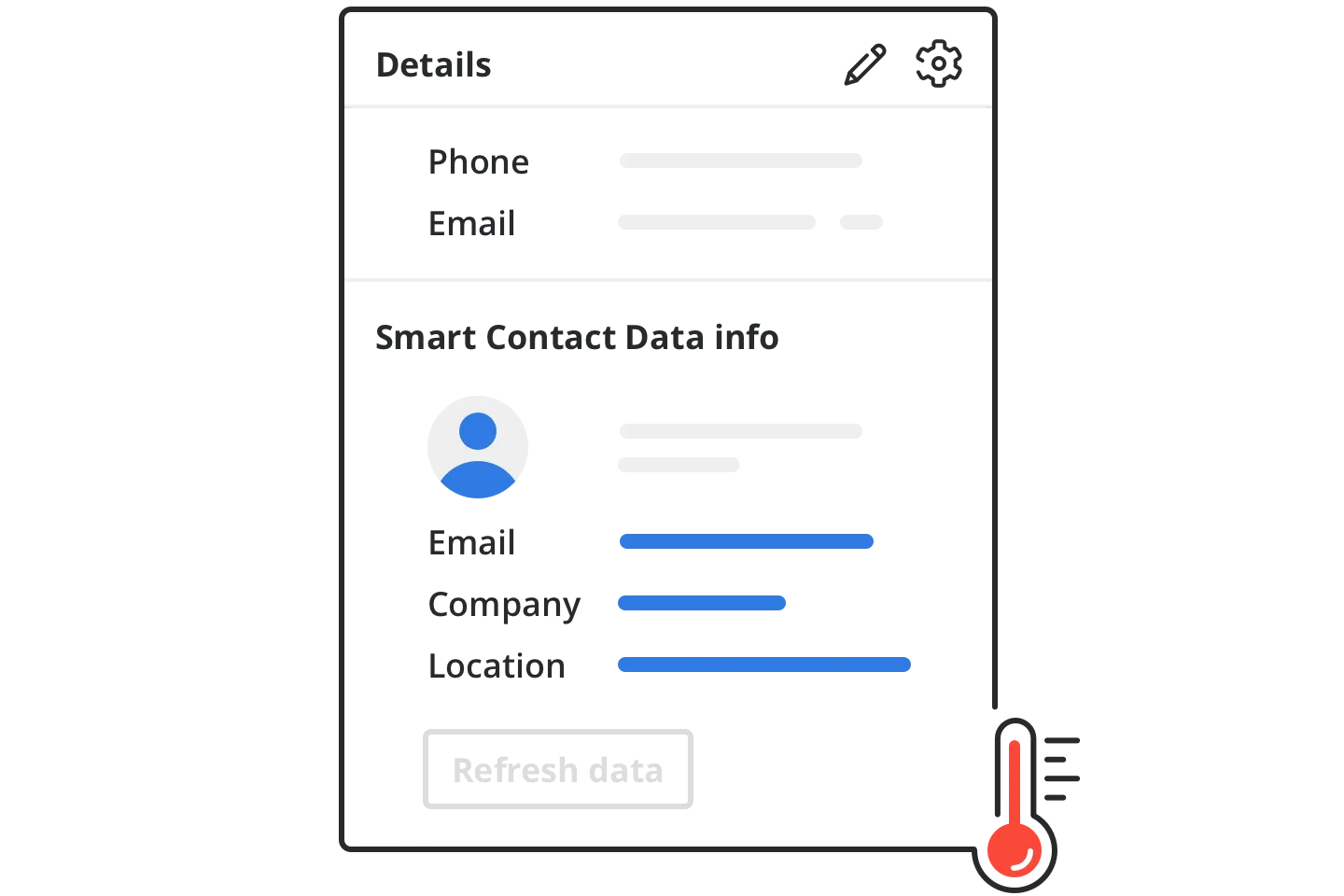 Gain valuable insights about your contacts with one click. Smart Contact Data retrieves web-data about your contacts instantaneously. You’ll find valuable information from sources like LinkedIn, which could be key to closing the deal and will save you a lot of time.